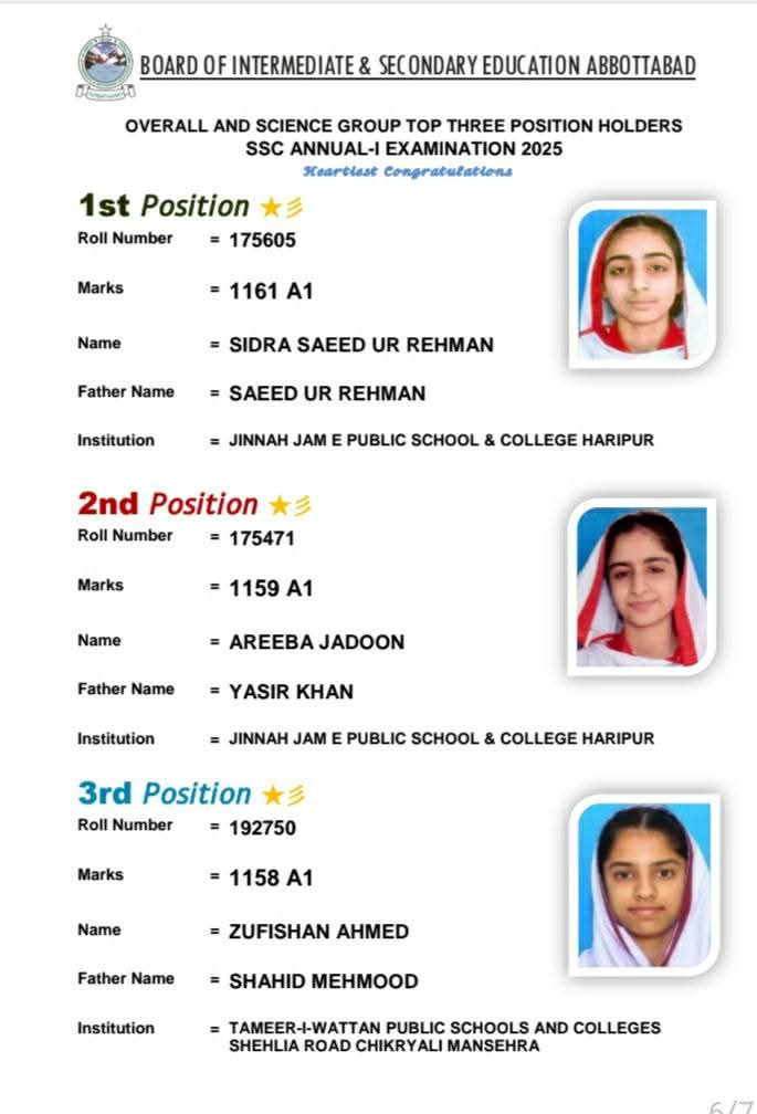 We will update this section LIVE as soon as the official position holders’ names and their marks are released by BISE Abbottabad. Stay tuned for the names of these shining stars!
